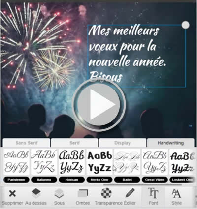 Si vous le souhaitez, vous pouvez éditer n'importe quelle image sur notre site et la personnaliser comme vous le souhaitez avec notre puissant éditeur pour avoir une carte de voeux unique et spéciale.